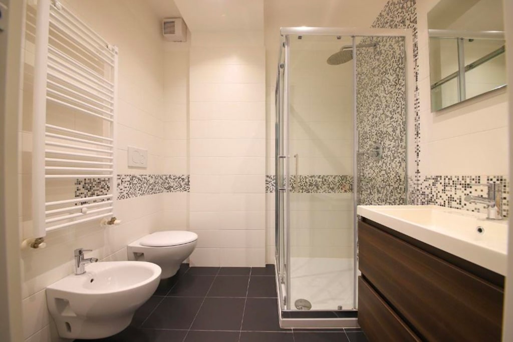Il bagno è completo di WC, doccia, bidet e lavandino. L’appartamento è dotato di: TV (una in ogni camera), lavatrice, forno, macchina caffè modello Nespresso, frigorifero, climatizzatore e Wi-Fi gratuito. Lenzuola, teli mare ed asciugamani sono compresi e li troverete al vostro check-in.